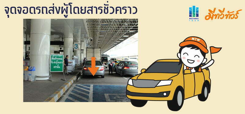 เข้าสู่หน้าอาคารผู้โดยสารขาออก สามารถจอดรถส่งผู้โดยสารได้ชั่วคราว (กรณีที่มีคนขับรถมาส่ง หรือนั่งแท็กซี่มา)