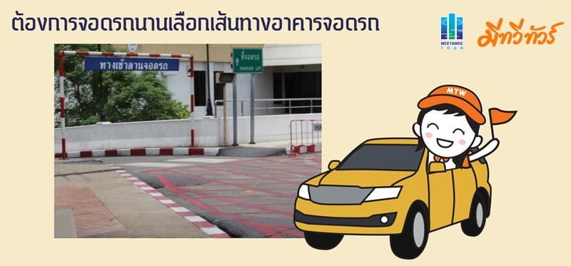 โดยแทนที่ท่านจะจอดตรงหน้าอาคารก็ขับเลยหน้าอาคารท่านจะเจอป้ายอาคารจอดรถ